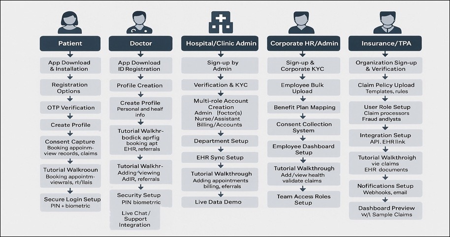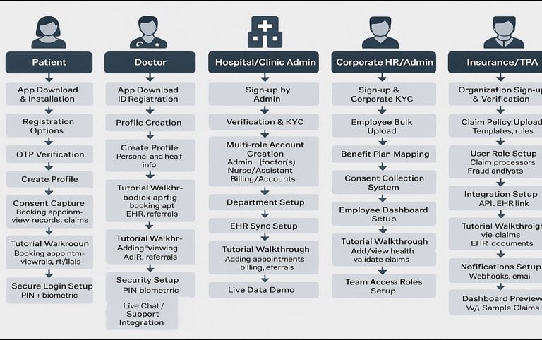 Insurance, TPA, Hospitals, Clinics, Doctors, other Health professionals, Corporates and Patients-all connected in one unified platform.